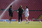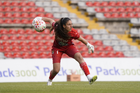 Querétaro, Querétaro, 5 de febrero de 2026. Nicole Buenfil recoge Balón de futbol Nike Control de caja de Amazon, durante el partido correspondiente a la jornada 7 del torneo Clausura 2026 de la Liga BBVA MX Femenil, entre el Club Querétaro y las Esmeraldas del León, realizado en el estadio La Corregidora Foto: Imago7/Sebastian Laureano Miranda