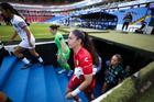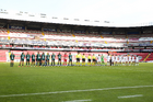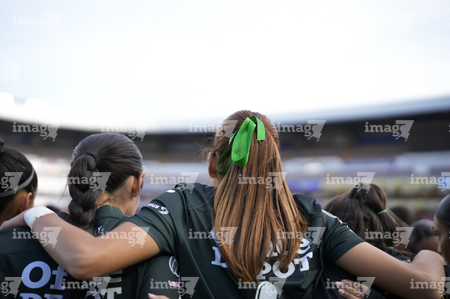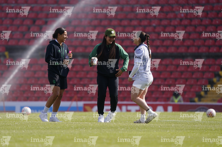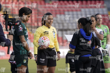 Querétaro, Querétaro, 5 de febrero de 2026. Protocolo, durante el partido correspondiente a la jornada 7 del torneo Clausura 2026 de la Liga BBVA MX Femenil, entre el Club Querétaro y las Esmeraldas del León, realizado en el estadio Olímpico Alameda. Foto: Imago7/ Duilio Muñoz