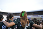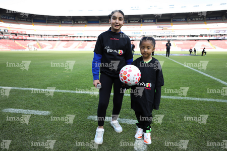 Querétaro, Querétaro, 5 de febrero de 2026. Embajadoras, durante el partido correspondiente a la jornada 7 del torneo Clausura 2026 de la Liga BBVA MX Femenil, entre el Club Querétaro y las Esmeraldas del León, realizado en el estadio Olímpico Alameda. Foto: Imago7/ Duilio Muñoz