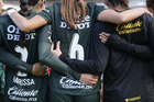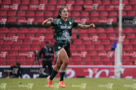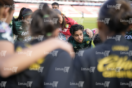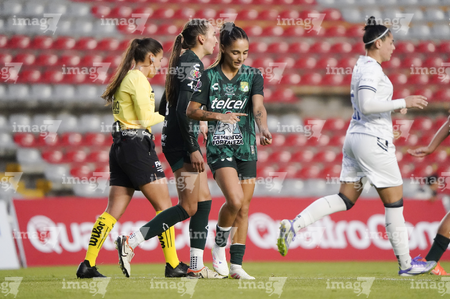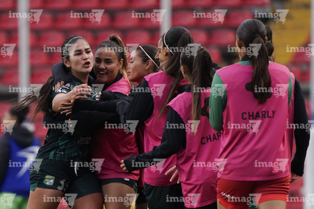 Querétaro, Querétaro, 5 de febrero de 2026. Jugadoras del León, durante el partido correspondiente a la jornada 7 del torneo Clausura 2026 de la Liga BBVA MX Femenil, entre el Club Querétaro y las Esmeraldas del León, realizado en el estadio Olímpico Alameda. Foto: Imago7/Sebastian Laureano Miranda