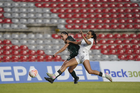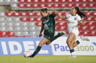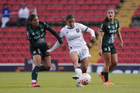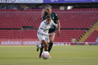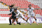 Querétaro, Querétaro, 5 de febrero de 2026. Solange Lemos (D), durante el partido correspondiente a la jornada 7 del torneo Clausura 2026 de la Liga BBVA MX Femenil, entre el Club Querétaro y las Esmeraldas del León, realizado en el estadio Olímpico Alameda. Foto: Imago7/