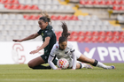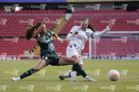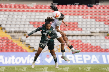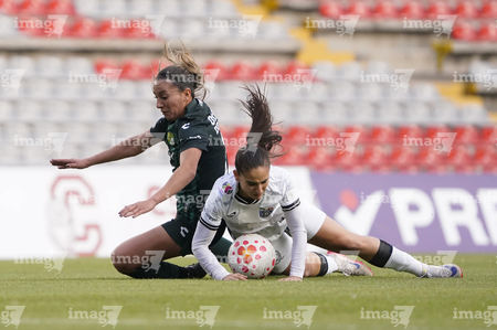 Querétaro, Querétaro, 5 de febrero de 2026. Rubí Soto y Guillermina Grant, durante el partido correspondiente a la jornada 7 del torneo Clausura 2026 de la Liga BBVA MX Femenil, entre el Club Querétaro y las Esmeraldas del León, realizado en el estadio La Corregidora Foto: Imago7/Sebastian Laureano Miranda