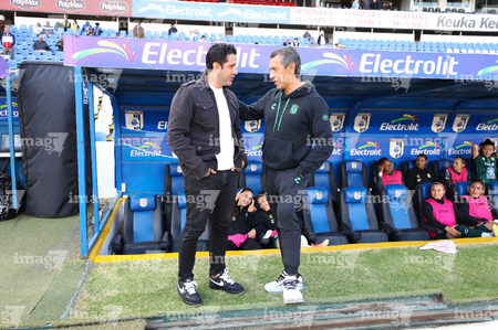 Querétaro, Querétaro, 5 de febrero de 2026. Edgar Mejía, director técnico y Alejandro Corona, director técnico, durante el partido correspondiente a la jornada 7 del torneo Clausura 2026 de la Liga BBVA MX Femenil, entre el Club Querétaro y las Esmeraldas del León, realizado en el estadio Olímpico Alameda. Foto: Imago7/ Duilio Muñoz