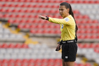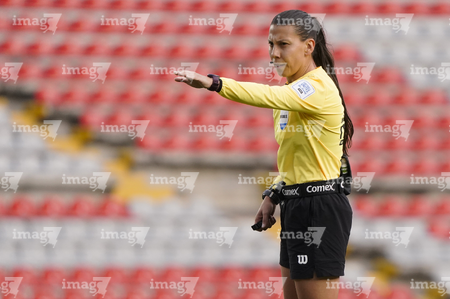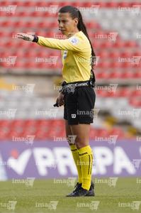 Querétaro, Querétaro, 5 de febrero de 2026. Erika Monserrat González, árbitra central, durante el partido correspondiente a la jornada 7 del torneo Clausura 2026 de la Liga BBVA MX Femenil, entre el Club Querétaro y las Esmeraldas del León, realizado en el estadio La Corregidora Foto: Imago7/Sebastian Laureano Miranda
