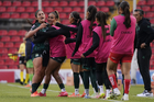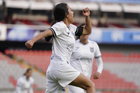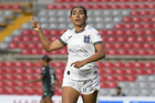 Querétaro, Querétaro, 5 de febrero de 2026. Solange Lemos en festejo de gol, durante el partido correspondiente a la jornada 7 del torneo Clausura 2026 de la Liga BBVA MX Femenil, entre el Club Querétaro y las Esmeraldas del León, realizado en el estadio La Corregidora Foto: Imago7/Sebastian Laureano Miranda