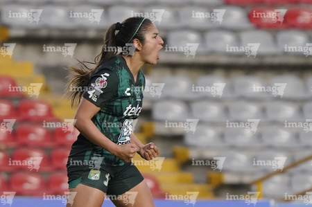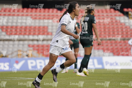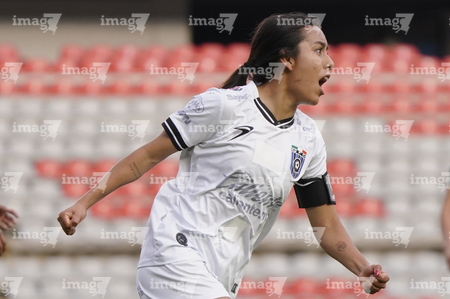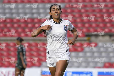 Querétaro, Querétaro, 5 de febrero de 2026. Victoria Ceceña en festejo de gol, durante el partido correspondiente a la jornada 7 del torneo Clausura 2026 de la Liga BBVA MX Femenil, entre el Club Querétaro y las Esmeraldas del León, realizado en el estadio Corregidora. Foto: Imago7/ Duilio Muñoz