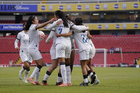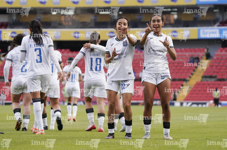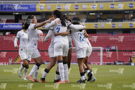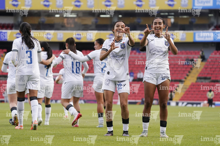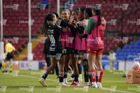 Querétaro, Querétaro, 5 de febrero de 2026. Jugadoras del Querétaro femenil en festejo de gol, durante el partido correspondiente a la jornada 7 del torneo Clausura 2026 de la Liga BBVA MX Femenil, entre el Club Querétaro y las Esmeraldas del León, realizado en el estadio La Corregidora Foto: Imago7/Sebastian Laureano Miranda