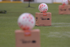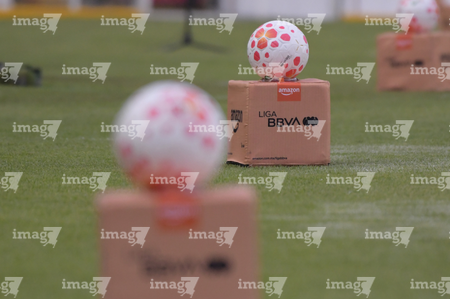 Querétaro, Querétaro, 5 de febrero de 2026. Balón de futbol Nike Control sobre caja de Amazon, durante el partido correspondiente a la jornada 7 del torneo Clausura 2026 de la Liga BBVA MX Femenil, entre el Club Querétaro y las Esmeraldas del León, realizado en el estadio Corregidora. Foto: Imago7/ Duilio Muñoz