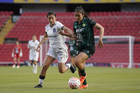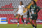 Querétaro, Querétaro, 5 de febrero de 2026. Alondra Camargo (I), durante el partido correspondiente a la jornada 7 del torneo Clausura 2026 de la Liga BBVA MX Femenil, entre el Club Querétaro y las Esmeraldas del León, realizado en el estadio Olímpico Alameda. Foto: Imago7/
