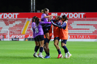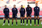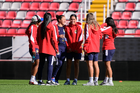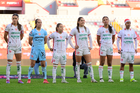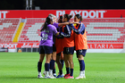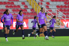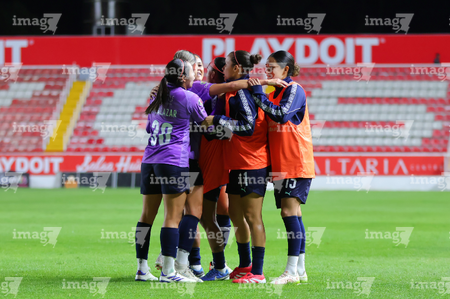 Aguascalientes, Aguascalientes, 5 de febrero de 2026. Jugadoras del Necaxa femenil durante el partido correspondiente a la jornada 7 del torneo Clausura 2026 de la Liga BBVA MX Femenil, entre las Centellas del Necaxa y las Chivas Rayadas del Guadalajara, realizado en el estadio Victoria. Foto: Imago7/ Pablo Ramírez