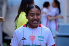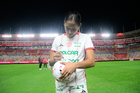 Aguascalientes, Aguascalientes, 5 de febrero de 2026. Blanca Félix regala su playera, durante el partido correspondiente a la jornada 7 del torneo Clausura 2026 de la Liga BBVA MX Femenil, entre las Centellas del Necaxa y las Chivas Rayadas del Guadalajara, realizado en el estadio Victoria. Foto: Imago7/ Pablo Ramírez