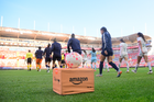 Aguascalientes, Aguascalientes, 5 de febrero de 2026. Balón de futbol Nike Control sobre caja de Amazon, durante el partido correspondiente a la jornada 7 del torneo Clausura 2026 de la Liga BBVA MX Femenil, entre las Centellas del Necaxa y las Chivas Rayadas del Guadalajara, realizado en el estadio Victoria. Foto: Imago7/ Pablo Ramírez