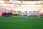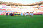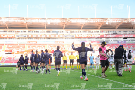Aguascalientes, Aguascalientes, 5 de febrero de 2026. Protocolo, durante el partido correspondiente a la jornada 7 del torneo Clausura 2026 de la Liga BBVA MX Femenil, entre las Centellas del Necaxa y las Chivas Rayadas del Guadalajara, realizado en el estadio Victoria. Foto: Imago7/ Pablo Ramírez