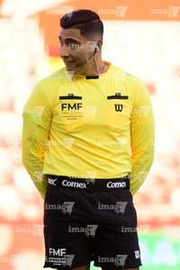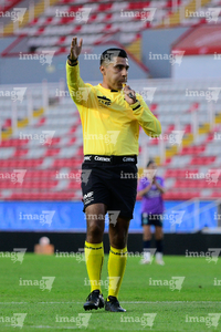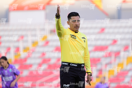 Aguascalientes, Aguascalientes, 5 de febrero de 2026. Iván Alberto Salazar, árbitro central, durante el partido correspondiente a la jornada 7 del torneo Clausura 2026 de la Liga BBVA MX Femenil, entre las Centellas del Necaxa y las Chivas Rayadas del Guadalajara, realizado en el estadio Victoria. Foto: Imago7/ Pablo Ramírez