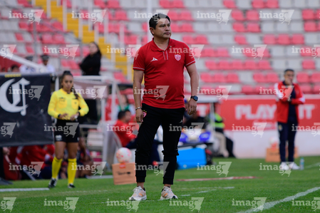 Aguascalientes, Aguascalientes, 5 de febrero de 2026. Antonio Contreras, director técnico, durante el partido correspondiente a la jornada 7 del torneo Clausura 2026 de la Liga BBVA MX Femenil, entre las Centellas del Necaxa y las Chivas Rayadas del Guadalajara, realizado en el estadio Victoria. Foto: Imago7/ Pablo Ramírez