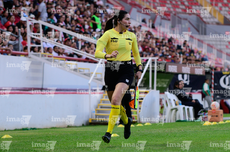 Aguascalientes, Aguascalientes, 5 de febrero de 2026. Melanie Esmeralda Villavicencio, árbitra asistente, durante el partido correspondiente a la jornada 7 del torneo Clausura 2026 de la Liga BBVA MX Femenil, entre las Centellas del Necaxa y las Chivas Rayadas del Guadalajara, realizado en el estadio Victoria. Foto: Imago7/ Pablo Ramírez