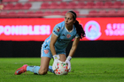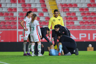 Aguascalientes, Aguascalientes, 5 de febrero de 2026. Sashenka Porras resultó lesionada, durante el partido correspondiente a la jornada 7 del torneo Clausura 2026 de la Liga BBVA MX Femenil, entre las Centellas del Necaxa y las Chivas Rayadas del Guadalajara, realizado en el estadio Victoria. Foto: Imago7/ Pablo Ramírez