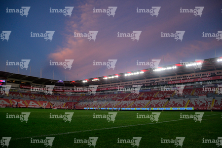 Aguascalientes, Aguascalientes, 5 de febrero de 2026. Panorámica del estadio al atardecer, durante el partido correspondiente a la jornada 7 del torneo Clausura 2026 de la Liga BBVA MX Femenil, entre las Centellas del Necaxa y las Chivas Rayadas del Guadalajara, realizado en el estadio Victoria. Foto: Imago7/ Pablo Ramírez