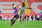 Aguascalientes, Aguascalientes, 5 de febrero de 2026. Cynthia González (I), durante el partido correspondiente a la jornada 7 del torneo Clausura 2026 de la Liga BBVA MX Femenil, entre las Centellas del Necaxa y las Chivas Rayadas del Guadalajara, realizado en el estadio Victoria. Foto: Imago7/ Rogelio Davila