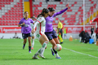 Aguascalientes, Aguascalientes, 5 de febrero de 2026. Alicia Cervantes (I) durante el partido correspondiente a la jornada 7 del torneo Clausura 2026 de la Liga BBVA MX Femenil, entre las Centellas del Necaxa y las Chivas Rayadas del Guadalajara, realizado en el estadio Victoria. Foto: Imago7/ Pablo Ramírez