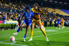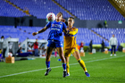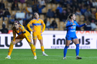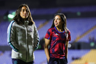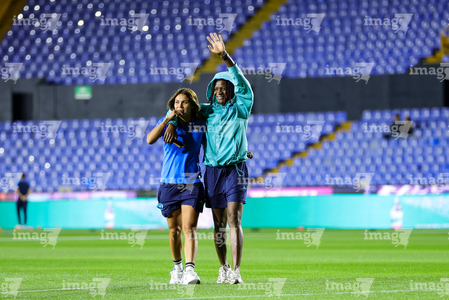 San Nicolás de los Garza, Nuevo León, 5 de febrero de 2026. Emma Watson y Michaela Abam, durante el partido correspondiente a la jornada 7 del torneo Clausura 2026 de la Liga BBVA MX Femenil, entre las Tigres de la UANL y la Máquina Celeste del Cruz Azul, realizado en el estadio Universitario. Foto: Imago7/ Andrea Jiménez