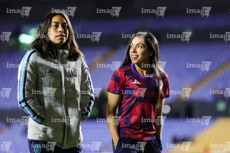 San Nicolás de los Garza, Nuevo León, 5 de febrero de 2026. Diana Ordoñez e Ivonne Gutiérrez, durante el partido correspondiente a la jornada 7 del torneo Clausura 2026 de la Liga BBVA MX Femenil, entre las Tigres de la UANL y la Máquina Celeste del Cruz Azul, realizado en el estadio Universitario. Foto: Imago7/ Nora Pamela
