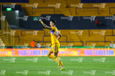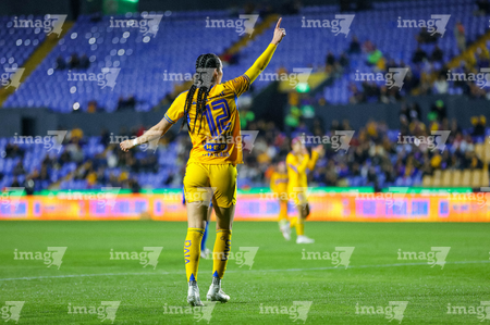 San Nicolás de los Garza, Nuevo León, 5 de febrero de 2026. Diana Ordoñez en festejo de gol, durante el partido correspondiente a la jornada 7 del torneo Clausura 2026 de la Liga BBVA MX Femenil, entre las Tigres de la UANL y la Máquina Celeste del Cruz Azul, realizado en el estadio Universitario. Foto: Imago7/ Nora Pamela
