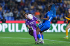 San Nicolás de los Garza, Nuevo León, 5 de febrero de 2026. Araceli Torres y Thembi Kgatlana, durante el partido correspondiente a la jornada 7 del torneo Clausura 2026 de la Liga BBVA MX Femenil, entre las Tigres de la UANL y la Máquina Celeste del Cruz Azul, realizado en el estadio Universitario. Foto: Imago7/ Andrea Jiménez