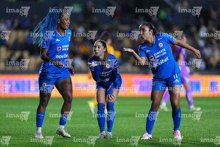 San Nicolás de los Garza, Nuevo León, 5 de febrero de 2026. Jugadoras de Cruz Azul femenil, durante el partido correspondiente a la jornada 7 del torneo Clausura 2026 de la Liga BBVA MX Femenil, entre las Tigres de la UANL y la Máquina Celeste del Cruz Azul, realizado en el estadio Universitario. Foto: Imago7/ Andrea Jiménez