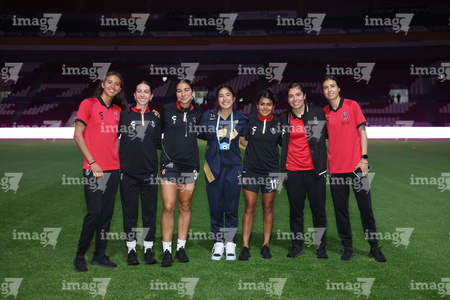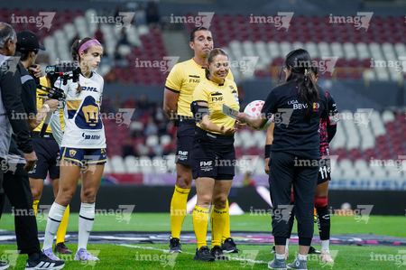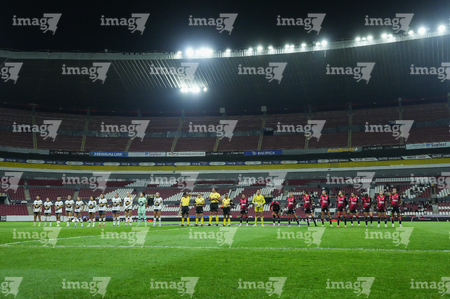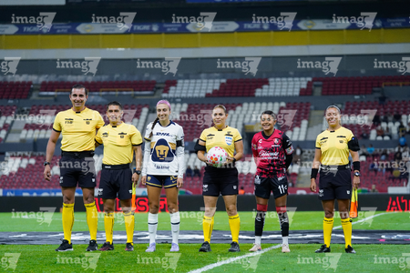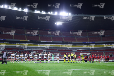 Guadalajara, Jalisco, 5 de febrero de 2026. Protocolo, durante el partido correspondiente a la jornada 7 del torneo Clausura 2026 de la Liga BBVA MX Femenil, entre las Rojinegras del Atlas y las Pumas de la UNAM, realizado en el estadio Jalisco. Foto: Imago7/ Juan Carlos Cubeyro.