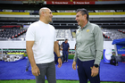 Guadalajara, Jalisco, 5 de febrero de 2026. Juan Pablo Alfaro, director técnico y Roberto Medina, director técnico, durante el partido correspondiente a la jornada 7 del torneo Clausura 2026 de la Liga BBVA MX Femenil, entre las Rojinegras del Atlas y las Pumas de la UNAM, realizado en el estadio Jalisco. Foto: Imago7/ Juan Carlos Cubeyro.