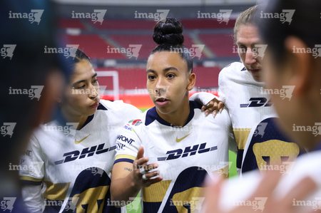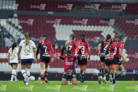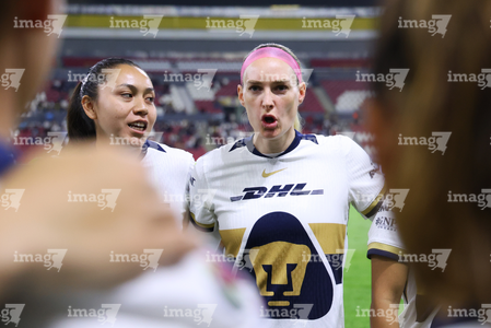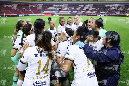 Guadalajara, Jalisco, 5 de febrero de 2026. Protocolo, durante el partido correspondiente a la jornada 7 del torneo Clausura 2026 de la Liga BBVA MX Femenil, entre las Rojinegras del Atlas y las Pumas de la UNAM, realizado en el estadio Jalisco. Foto: Imago7/ Hugo Ramírez