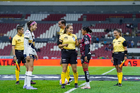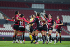 Guadalajara, Jalisco, 5 de febrero de 2026. Jugadoras del Atlas femenil en festejo, durante el partido correspondiente a la jornada 7 del torneo Clausura 2026 de la Liga BBVA MX Femenil, entre las Rojinegras del Atlas y las Pumas de la UNAM, realizado en el estadio Jalisco. Foto: Imago7/ Alejandro Lias