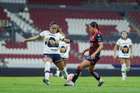 Guadalajara, Jalisco, 5 de febrero de 2026. María Sainz y Wendy Bonilla, durante el partido correspondiente a la jornada 7 del torneo Clausura 2026 de la Liga BBVA MX Femenil, entre las Rojinegras del Atlas y las Pumas de la UNAM, realizado en el estadio Jalisco. Foto: Imago7/ Juan Carlos Cubeyro.