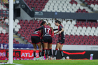Guadalajara, Jalisco, 5 de febrero de 2026. Jugadoras del Atlas femenil, durante el partido correspondiente a la jornada 7 del torneo Clausura 2026 de la Liga BBVA MX Femenil, entre las Rojinegras del Atlas y las Pumas de la UNAM, realizado en el estadio Jalisco. Foto: Imago7/ Hugo Ramírez