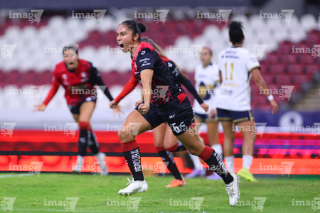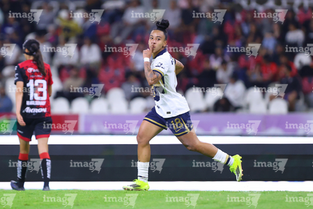 Guadalajara, Jalisco, 5 de febrero de 2026. Brenda Ceren en festejo de gol, durante el partido correspondiente a la jornada 7 del torneo Clausura 2026 de la Liga BBVA MX Femenil, entre las Rojinegras del Atlas y las Pumas de la UNAM, realizado en el estadio Jalisco. Foto: Imago7/ Juan Carlos Cubeyro.