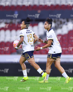 Guadalajara, Jalisco, 5 de febrero de 2026. Victoria Acevedo anota gol, durante el partido correspondiente a la jornada 7 del torneo Clausura 2026 de la Liga BBVA MX Femenil, entre las Rojinegras del Atlas y las Pumas de la UNAM, realizado en el estadio Jalisco. Foto: Imago7/ Juan Carlos Cubeyro.