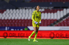 Guadalajara, Jalisco, 5 de febrero de 2026. Angelina Hix en lamento, durante el partido correspondiente a la jornada 7 del torneo Clausura 2026 de la Liga BBVA MX Femenil, entre las Rojinegras del Atlas y las Pumas de la UNAM, realizado en el estadio Jalisco. Foto: Imago7/ Alejandro Lias