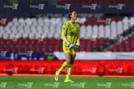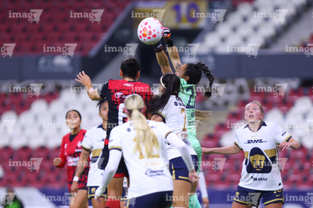 Guadalajara, Jalisco, 5 de febrero de 2026. Portigoles, durante el partido correspondiente a la jornada 7 del torneo Clausura 2026 de la Liga BBVA MX Femenil, entre las Rojinegras del Atlas y las Pumas de la UNAM, realizado en el estadio Jalisco. Foto: Imago7/ Hugo Ramírez
