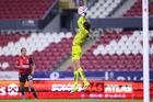 Guadalajara, Jalisco, 5 de febrero de 2026. Sanjuana Muñoz anota gol, durante el partido correspondiente a la jornada 7 del torneo Clausura 2026 de la Liga BBVA MX Femenil, entre las Rojinegras del Atlas y las Pumas de la UNAM, realizado en el estadio Jalisco. Foto: Imago7/ Hugo Ramírez