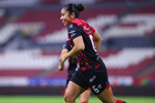 Guadalajara, Jalisco, 5 de febrero de 2026. Sanjuana Muñoz en festejo de gol, durante el partido correspondiente a la jornada 7 del torneo Clausura 2026 de la Liga BBVA MX Femenil, entre las Rojinegras del Atlas y las Pumas de la UNAM, realizado en el estadio Jalisco. Foto: Imago7/ Hugo Ramírez
