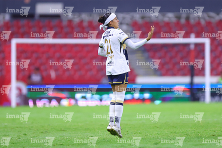 Guadalajara, Jalisco, 5 de febrero de 2026. Karen Ramírez, durante el partido correspondiente a la jornada 7 del torneo Clausura 2026 de la Liga BBVA MX Femenil, entre las Rojinegras del Atlas y las Pumas de la UNAM, realizado en el estadio Jalisco. Foto: Imago7/ Alejandro Lias