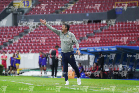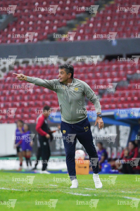 Guadalajara, Jalisco, 5 de febrero de 2026. Roberto Medina, director técnico, durante el partido correspondiente a la jornada 7 del torneo Clausura 2026 de la Liga BBVA MX Femenil, entre las Rojinegras del Atlas y las Pumas de la UNAM, realizado en el estadio Jalisco. Foto: Imago7/ Juan Carlos Cubeyro.