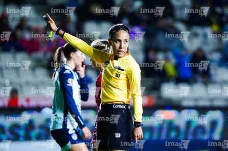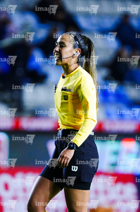 Pachuca, Hidalgo, 6 de febrero de 2026. María Fernanda Márquez, árbitra central, durante el partido correspondiente a la jornada 7 del torneo Clausura 2026 de la Liga BBVA MX Femenil, entre las Tuzas del Pachuca y las Cañoneras del Mazatlán FC, realizado en el estadio Hidalgo. Foto: Imago7/ Elizabeth Hernández
