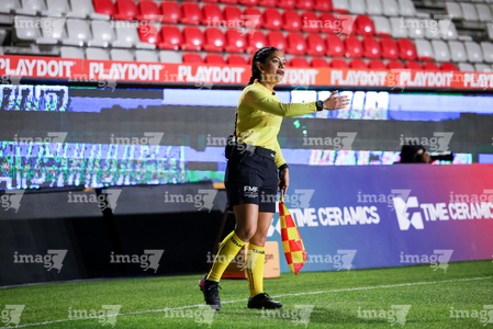 Pachuca, Hidalgo, 6 de febrero de 2026. Azucena Baños, árbitra asistente, durante el partido correspondiente a la jornada 7 del torneo Clausura 2026 de la Liga BBVA MX Femenil, entre las Tuzas del Pachuca y las Cañoneras del Mazatlán FC, realizado en el estadio Hidalgo. Foto: Imago7/ Jacqueline Pedraza