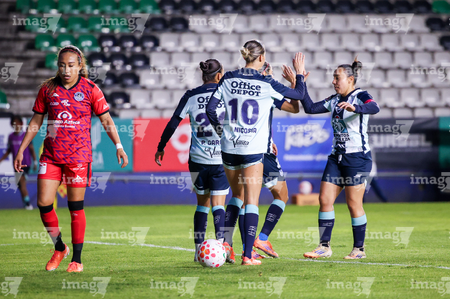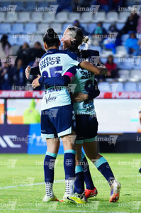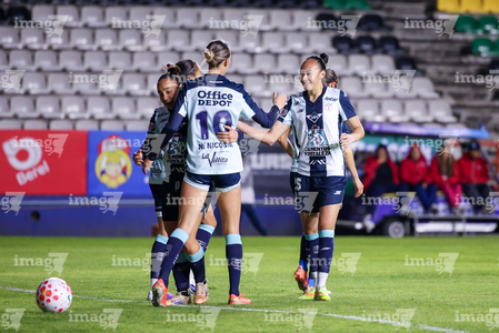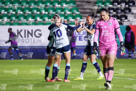 Pachuca, Hidalgo, 6 de febrero de 2026. Jugadoras de Tuzas en festejo de gol, durante el partido correspondiente a la jornada 7 del torneo Clausura 2026 de la Liga BBVA MX Femenil, entre las Tuzas del Pachuca y las Cañoneras del Mazatlán FC, realizado en el estadio Hidalgo. Foto: Imago7/ Jacqueline Pedraza
