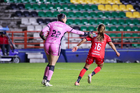 Pachuca, Hidalgo, 6 de febrero de 2026. Charlyn Corral en festejo de gol, durante el partido correspondiente a la jornada 7 del torneo Clausura 2026 de la Liga BBVA MX Femenil, entre las Tuzas del Pachuca y las Cañoneras del Mazatlán FC, realizado en el estadio Hidalgo. Foto: Imago7/ Elizabeth Hernández