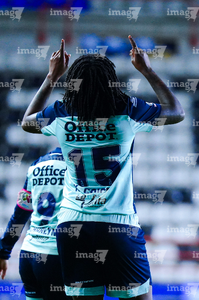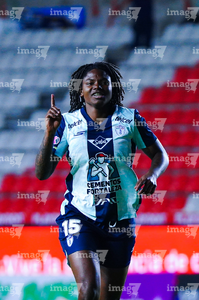 Pachuca, Hidalgo, 6 de febrero de 2026. Kelly Caicedo en festejo de gol, durante el partido correspondiente a la jornada 7 del torneo Clausura 2026 de la Liga BBVA MX Femenil, entre las Tuzas del Pachuca y las Cañoneras del Mazatlán FC, realizado en el estadio Hidalgo. Foto: Imago7/ Jacqueline Pedraza