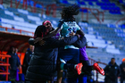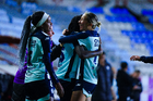 Pachuca, Hidalgo, 6 de febrero de 2026. Kenti Robles y Nina Nicosia en festejo de gol, durante el partido correspondiente a la jornada 7 del torneo Clausura 2026 de la Liga BBVA MX Femenil, entre las Tuzas del Pachuca y las Cañoneras del Mazatlán FC, realizado en el estadio Hidalgo. Foto: Imago7/ Elizabeth Hernández