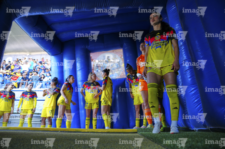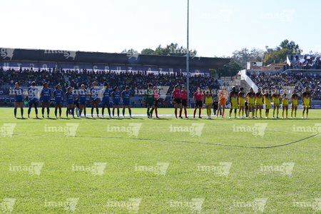 Cuernavaca, Morelos, 9 de febrero de 2026. Protocolo, durante el partido correspondiente a la jornada 8 del torneo Clausura 2026 de la Liga BBVA MX Femenil, entre la Máquina Celeste del Cruz Azul y las Águilas del América, realizado en el estadio Centenario. Foto: Imago7/ Daniel Sydney
